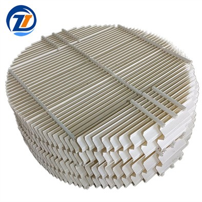 當(dāng)含有霧沫的氣體以一定速度流經(jīng)除霧器時(shí),由于氣體的慣性撞擊作用,霧沫與波形板相碰撞而被附著在波形板表面上。波形板表面上霧沫的擴(kuò)散、霧沫的重力沉降使霧沫形成較大的液滴并隨氣流向前運(yùn)動(dòng)至波形板轉(zhuǎn)彎處,由于轉(zhuǎn)向離心力及其與波形板的摩擦作用、吸附作用和液體的表面張力使得液滴越來(lái)越大,直到集聚的液滴大到其自身產(chǎn)生的重力超過(guò)氣體的上升力與液體表面張力的合力時(shí),液滴就從波形板表面上被分離下來(lái)。除霧器波形板的多折向結(jié)構(gòu)增加了霧沫被捕集的機(jī)會(huì),未被除去的霧沫在下一個(gè)轉(zhuǎn)彎處經(jīng)過(guò)相同的作用而被捕集,這樣反復(fù)作用,從而大大提高了除霧效率。氣體通過(guò)波形板除霧器后,基本上不含霧沫。